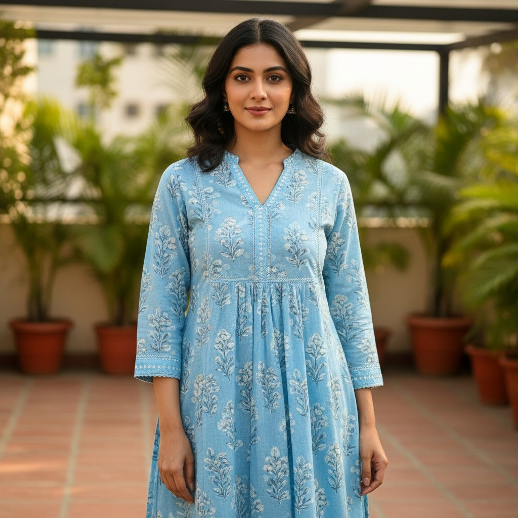 Sky Blue Contemporary Chikankari Set