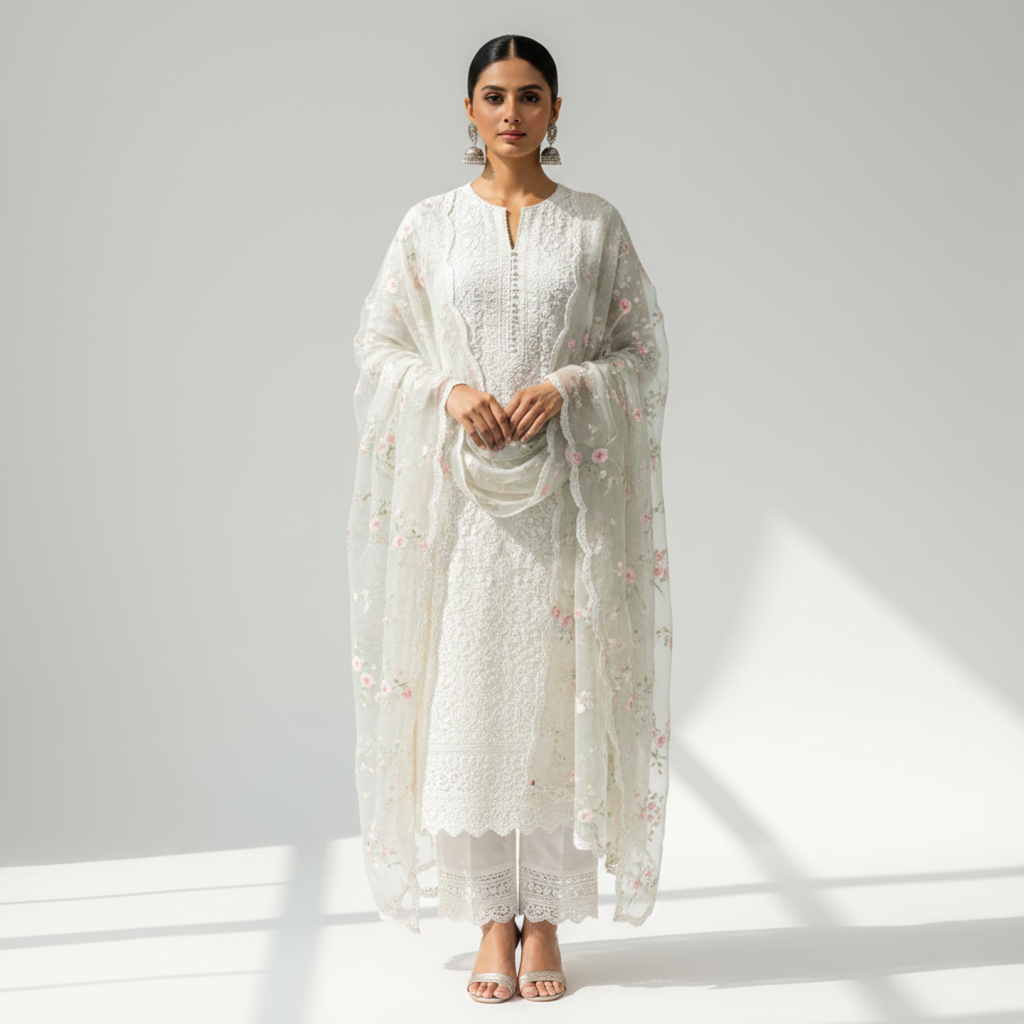 Off-White Luxury Chikankari Wedding Set